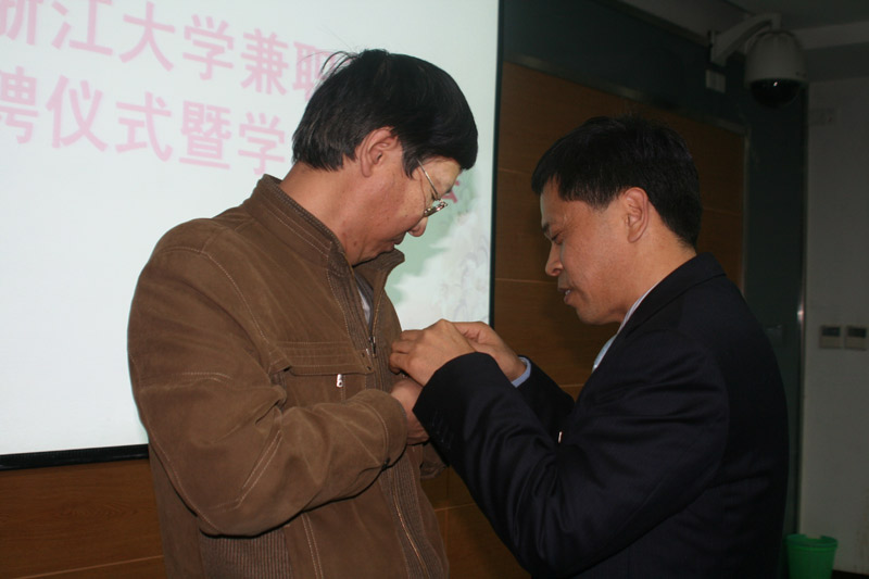 2010年12月13日下午15:00时,浙江大学医学部举办了“浙江省卫生厅厅长杨敬兼职教授受聘仪式暨学术报告会”。会议由公共卫生系副主任(主持工作)朱善宽教授主持,浙江大学党委副书记任少波教授、医学部主任段树民院士分别代表学校和医学部向杨敬厅长颁发了聘书并佩戴了校徽。